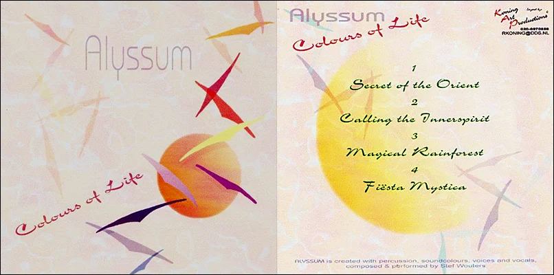 Voor percussionist STEF WOUTERS (‘Steve W.”) mocht ik o.a. een cassettehoes ontwerpen voor zijn demo-opnamen. Uiteindelijk bleek het contact met Stef voor mij de start te betekenen van een nieuw hoofdstuk als vaste sessie-studio-zanger bij componist/producer BERT VAN OUDENAREN uit Oude Meer. In een later stadium heb ik voor het project ‘Alyssum’ van Stef ook nog een CD hoes ontworpen voor zijn mini-album ‘Colours of Life’.