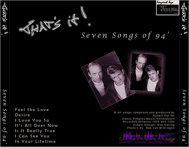 All songs composed and produced by Robert Pot for Goose Pimples Music Hellendoorn.