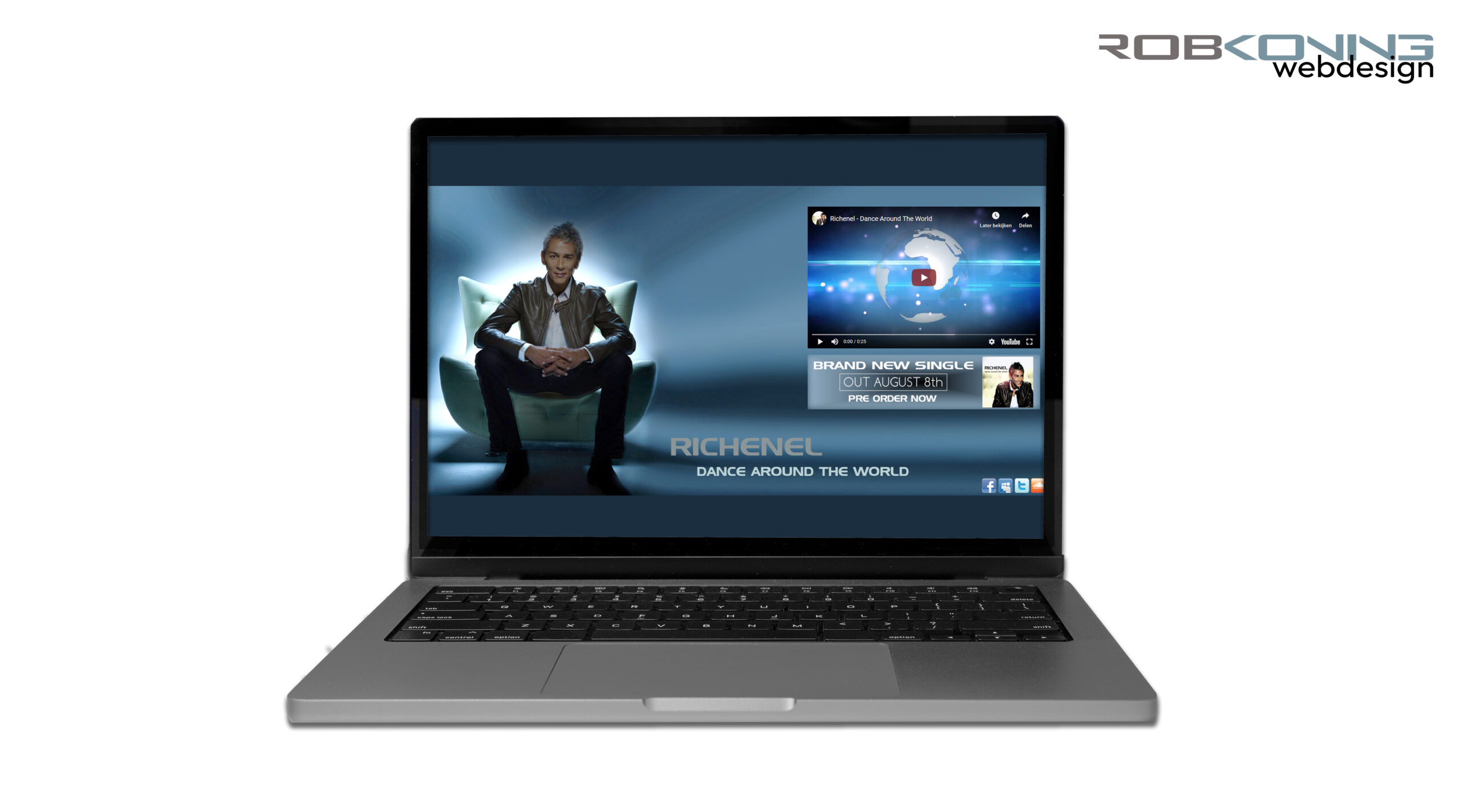 3e website (niet meer online) ontwikkeld in samenwerking met het Management van zanger/entertainer RICHENEL in aanloop naar de re-release van ‘Danc Aroudn The World – The remix’.